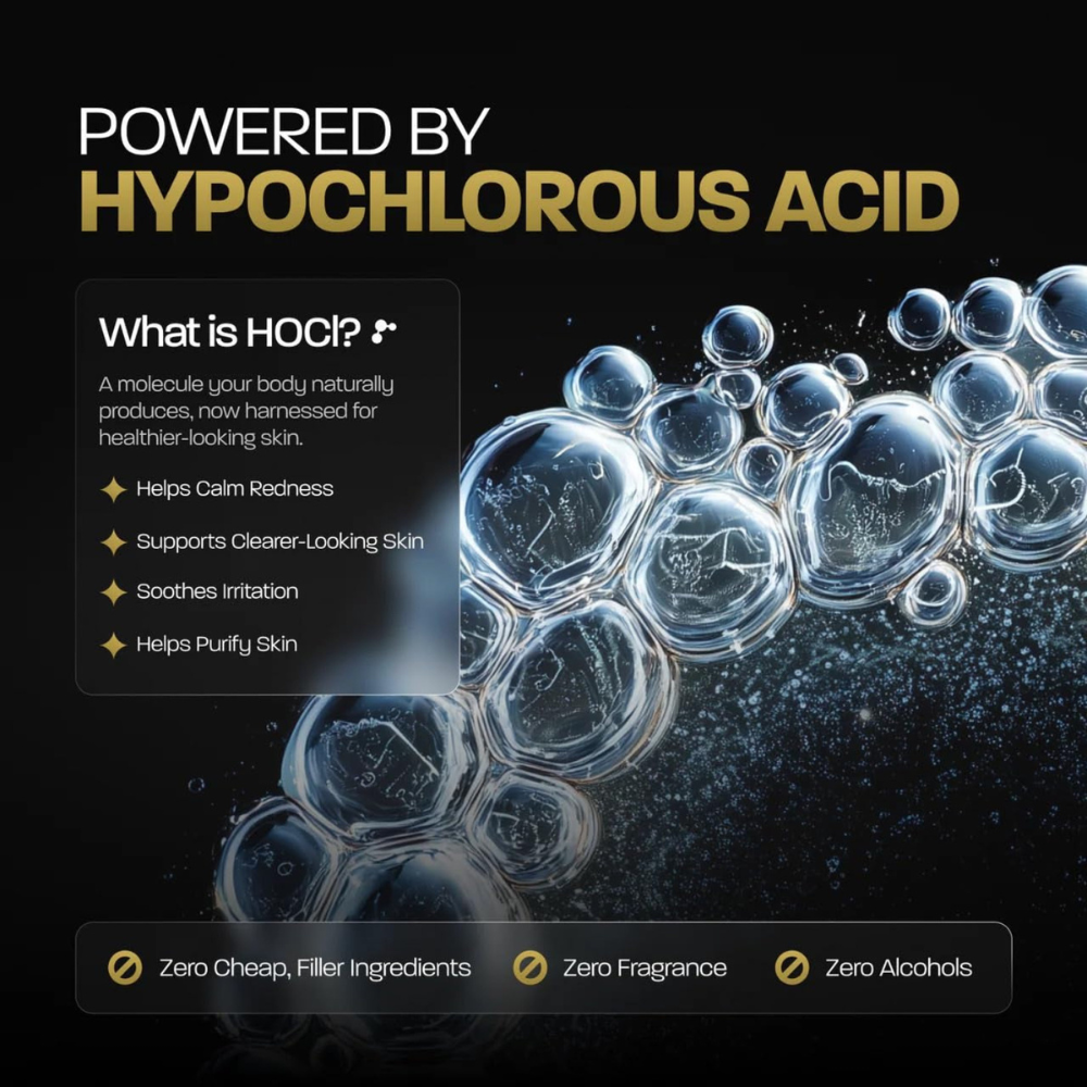 Tired of dull, irritated, or easily stressed skin? This hypochlorous acid face mist is designed to calm, refresh, and support clearer-looking skin in seconds. With just one spritz, it helps soothe redness, reduce impurities, and deliver lightweight hydration—without stickiness or harsh ingredients. Perfect for daily use, even on sensitive skin.